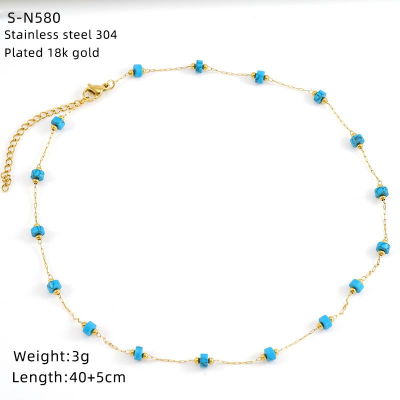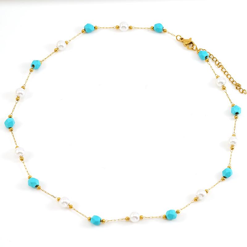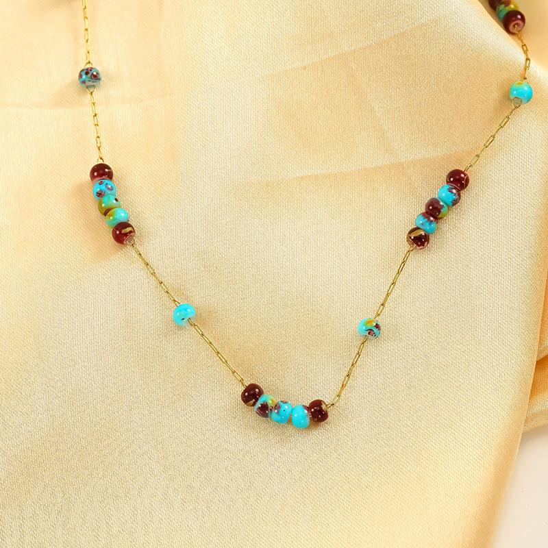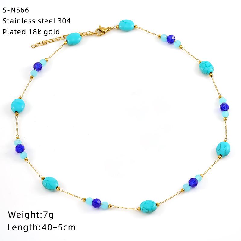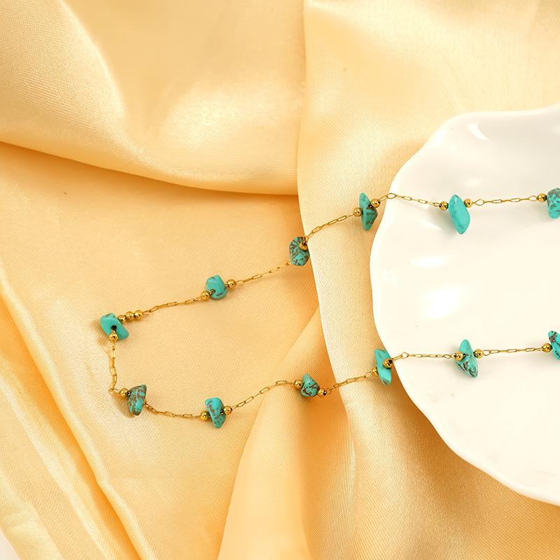 Ожерелье из нержавеющей стали с глазурованными бусинами и кристаллами, милое бирюзовое ожерелье из натурального камня, цепочка на шею, индивидуальная премиальная цепочка для ключицы