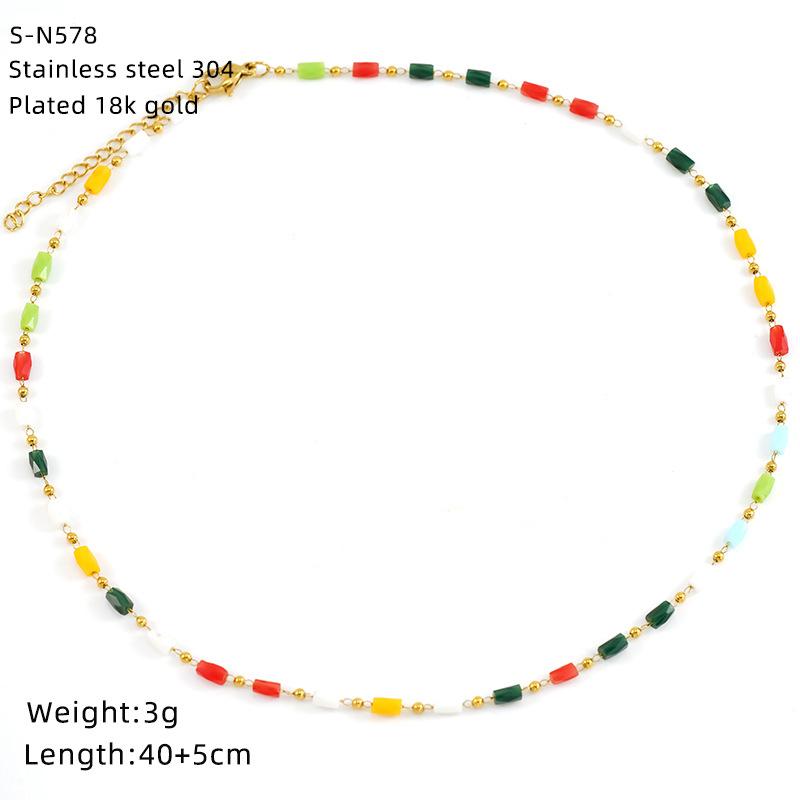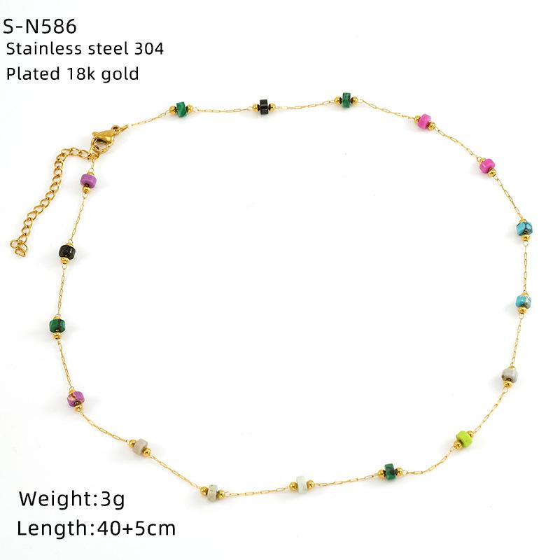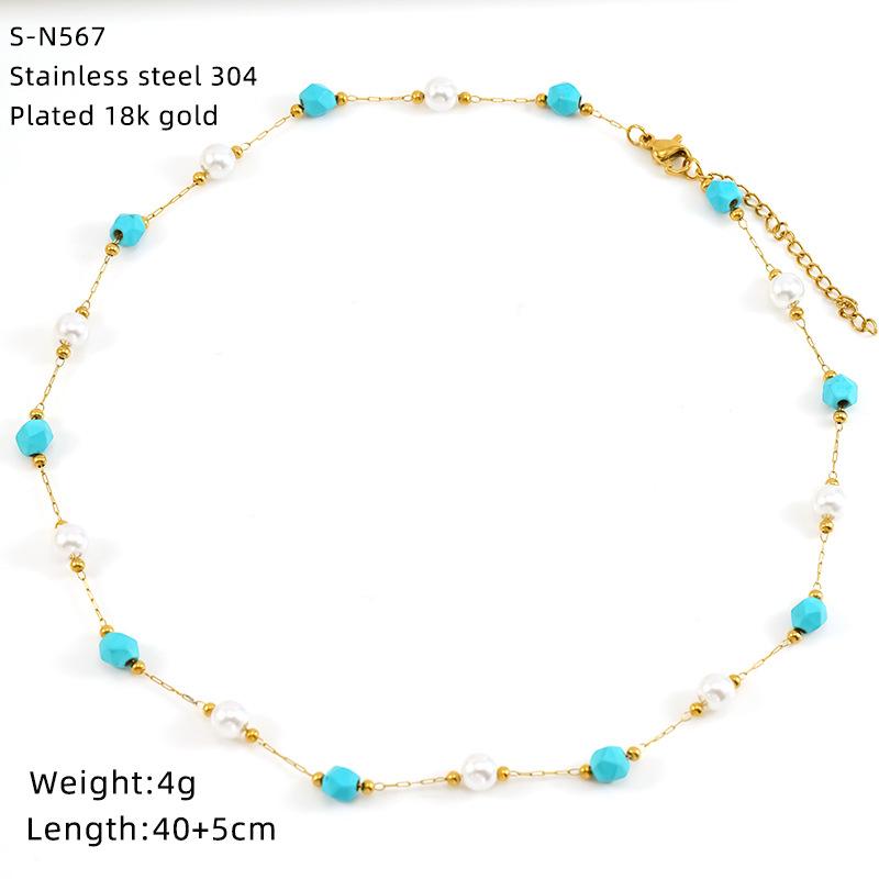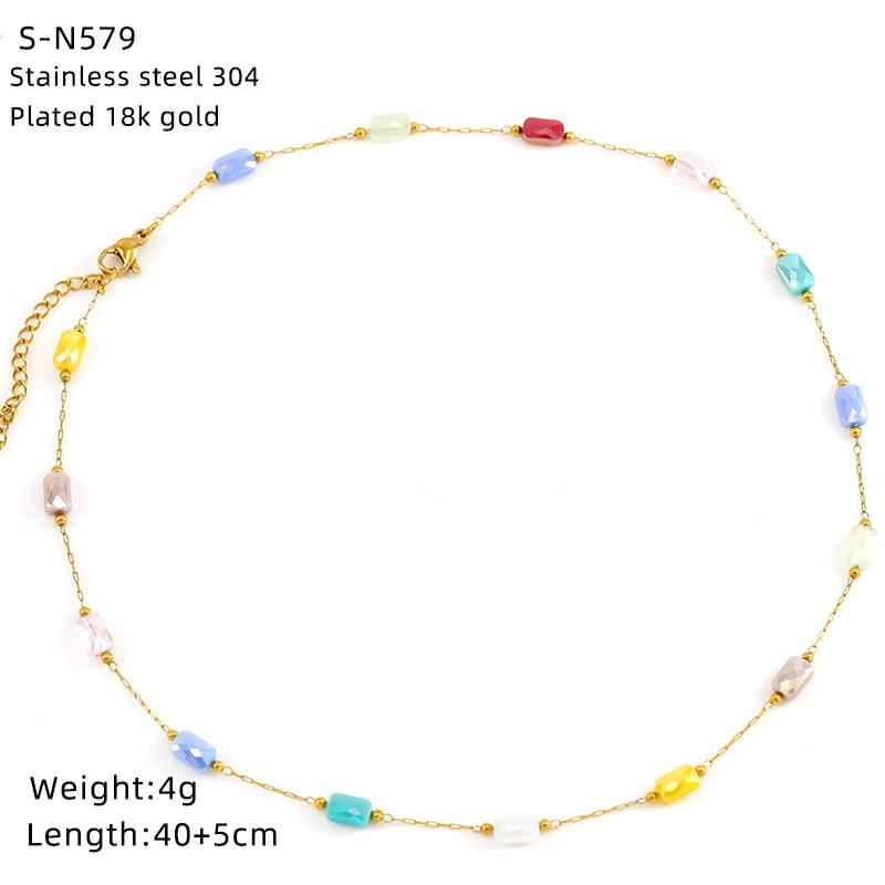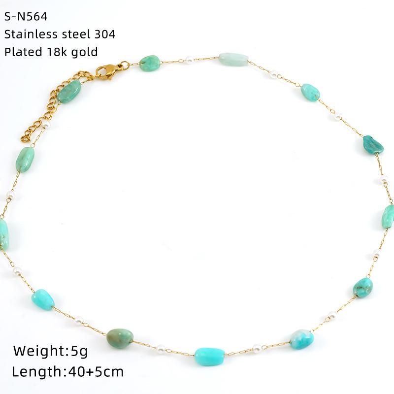 Ожерелье из нержавеющей стали с глазурованными бусинами и кристаллами, милое бирюзовое ожерелье из натурального камня, цепочка на шею, индивидуальная премиальная цепочка для ключицы