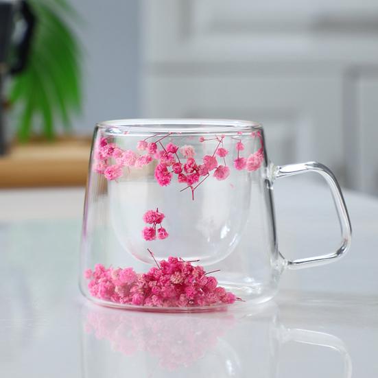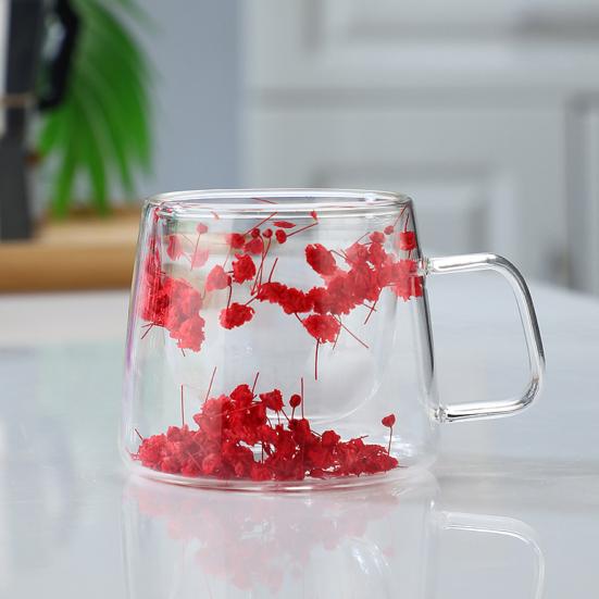 Большая емкость: Наслаждайтесь красотой цветочного дизайна в прозрачной кружке объемом 200 мл, созданной для идеальной прозрачности, комфорта и теплоизоляции, с ручкой, не допускающей ожогов, для дополнительного удобства.