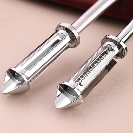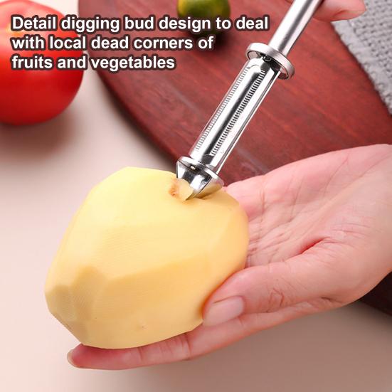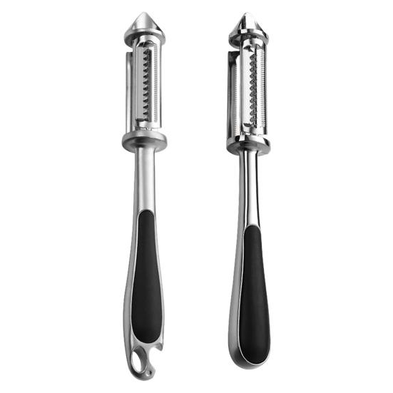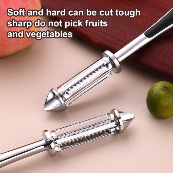 Прочная конструкция из нержавеющей стали: Изготовленная из высококачественной нержавеющей стали, наша овощечистка обеспечивает длительную остроту и долговечность, позволяя легко очищать различные фрукты и овощи.
