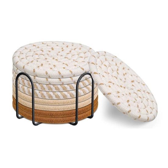 Естественная элегантность: Эти минималистичные подставки под стаканы, изготовленные из хлопковой веревки и металла, гармонично дополнят любой интерьер, добавив нотку естественной элегантности вашей кухне, спальне или столовой.