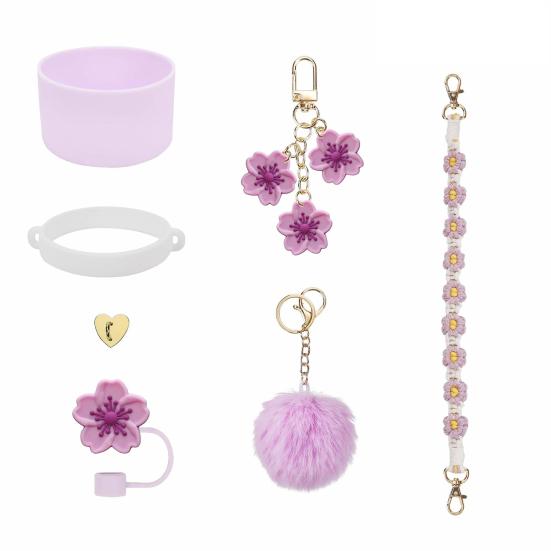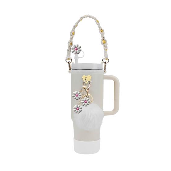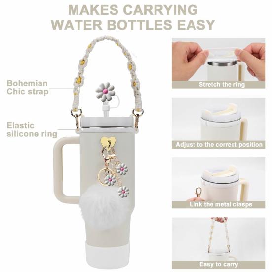 Полный набор аксессуаров: Улучшите свои впечатления от бутылки с водой с помощью нашего обширного набора аксессуаров, включающего ремешок для ручки, рукав, соломенную крышку, кольцо, помпон, декоративную цепочку и крючок.. (уведомление: Чашка в комплект не входит.)