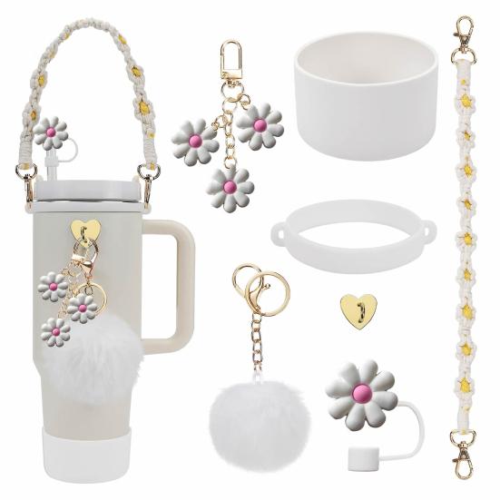 Наши чехлы для соломинок, изготовленные из высококачественного пищевого силикона, предназначены для стаканов Stanley емкостью 30/40 унций и других чашек с соломинками диаметром 0,4 дюйма.. Эти прочные, многоразовые и легко чистящиеся чехлы для соломинок обеспечивают дополнительное удобство при ежедневном приеме жидкости.. В комплект аксессуаров для бутылки с водой входит ремешок для ручки бутылки с водой, чехол для бутылки с водой, силиконовая крышка для соломинки, кольцо для бутылки с водой, помпон, декоративная цепочка и крючок в форме сердца.. Повысьте эстетическую привлекательность вашей бутылки с водой с помощью этого обязательного набора аксессуаров, созданного специально для бутылок с водой Stanley.. Повысьте уровень гидратации с помощью наших практичных и стильных аксессуаров для бутылок с водой.
