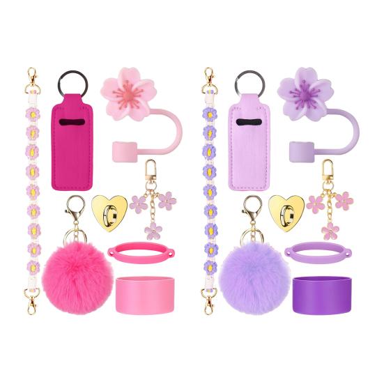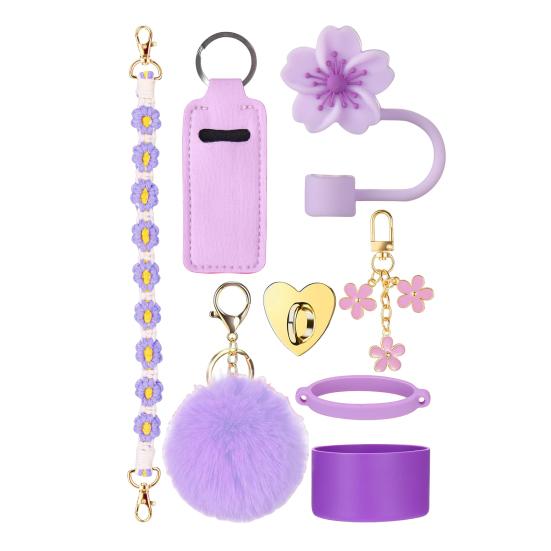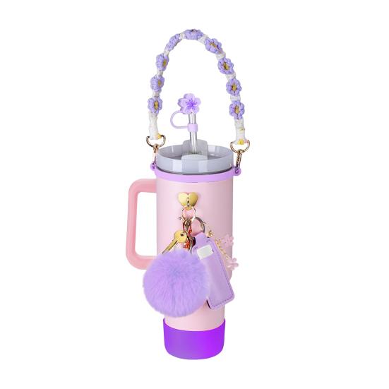 Эстетическое улучшение: Улучшите внешний вид вашей бутылки с водой с помощью нашего набора аксессуаров, который включает в себя ремешок для ручки, крышку, соломенную крышку, защитное кольцо, помпон, декоративную цепочку и крючок в форме сердца.. Превратите свою бутылку в стильный эффектный предмет.