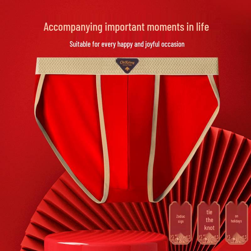 2025 Мужское нижнее белье из чистого хлопка с большим красным треугольником - Антибактериальное, дышащее, сексуальный подарок на год Бэнмин или свадьбу