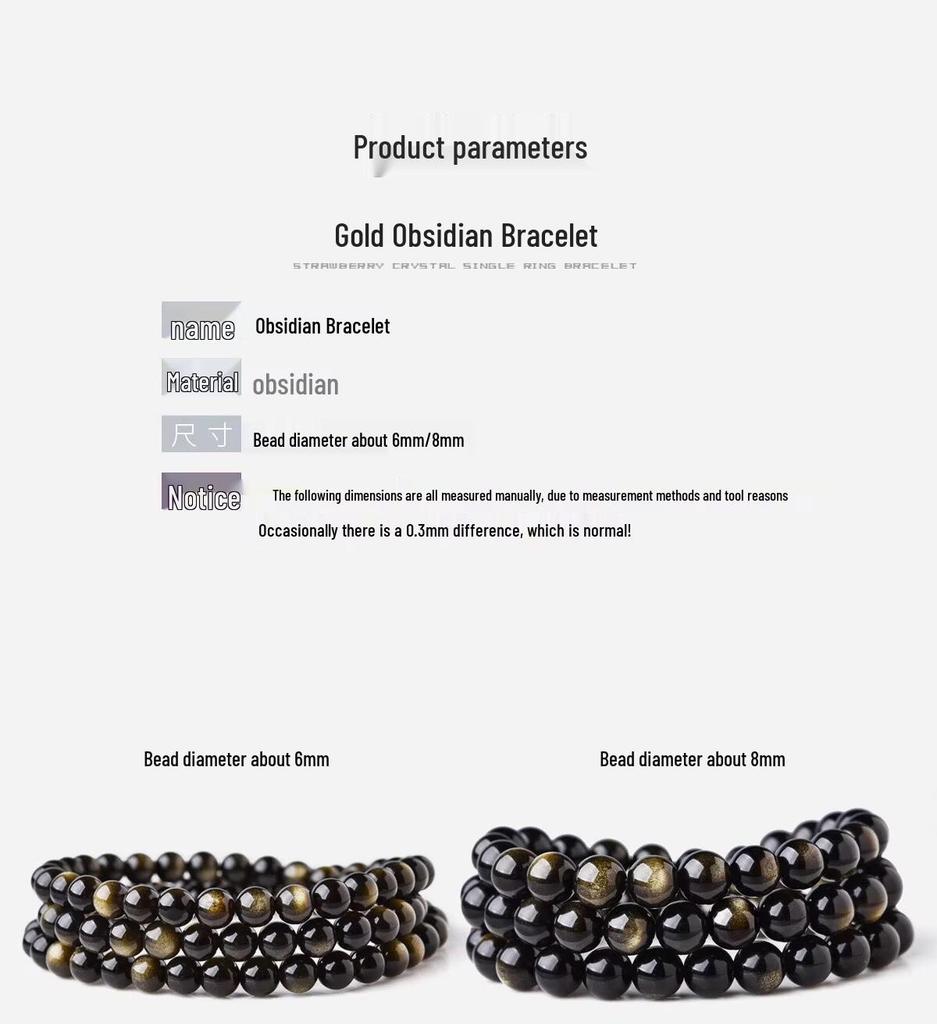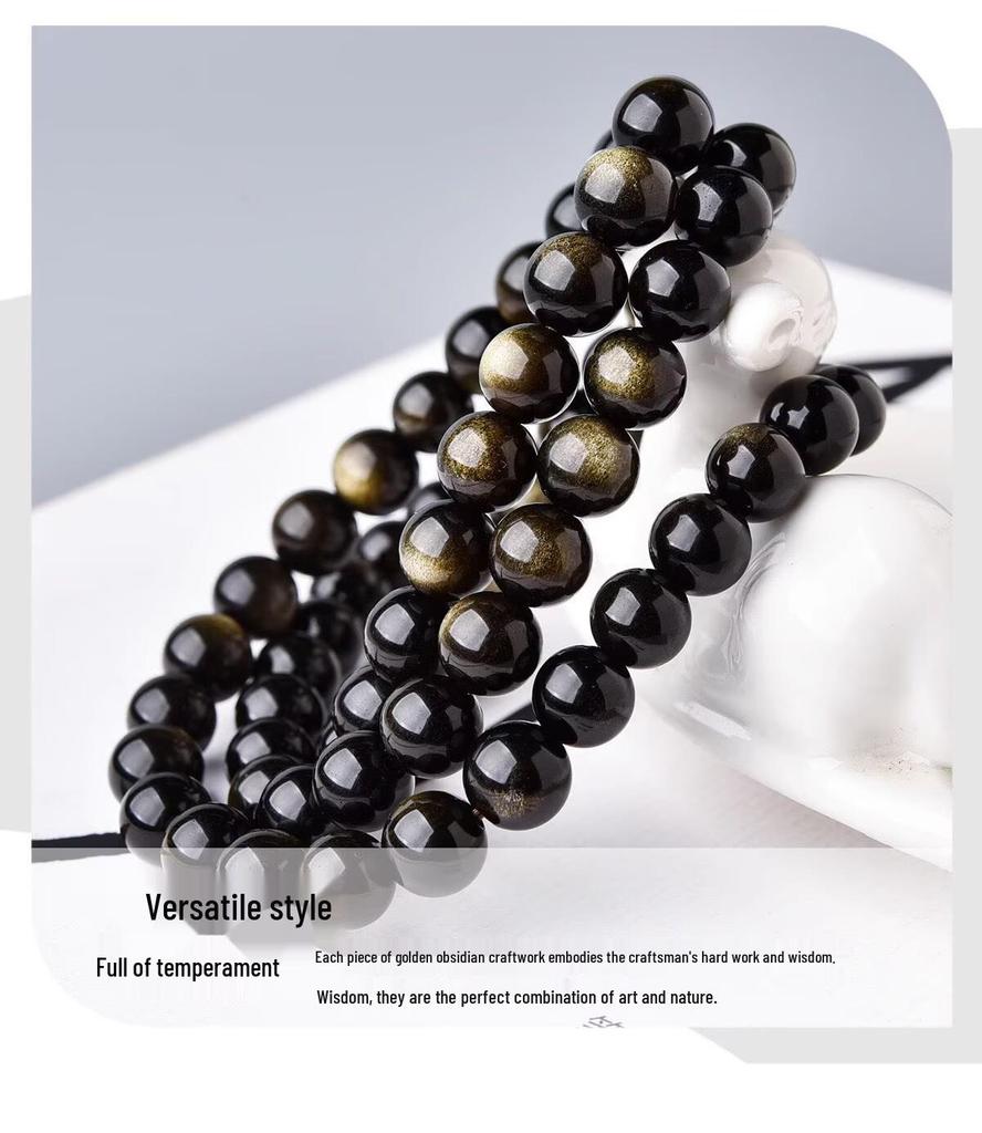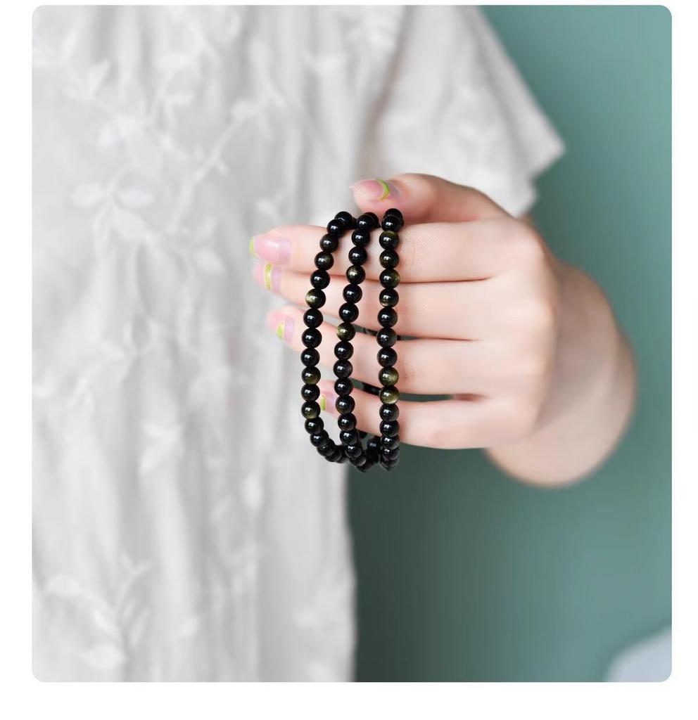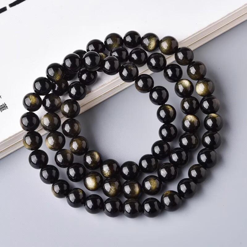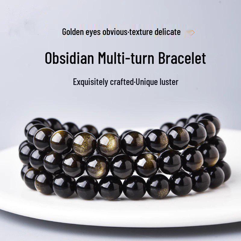 Браслет из натурального черного обсидиана с эффектом «золотой глаз» для мужчин и женщин - многослойный буддийский дизайн