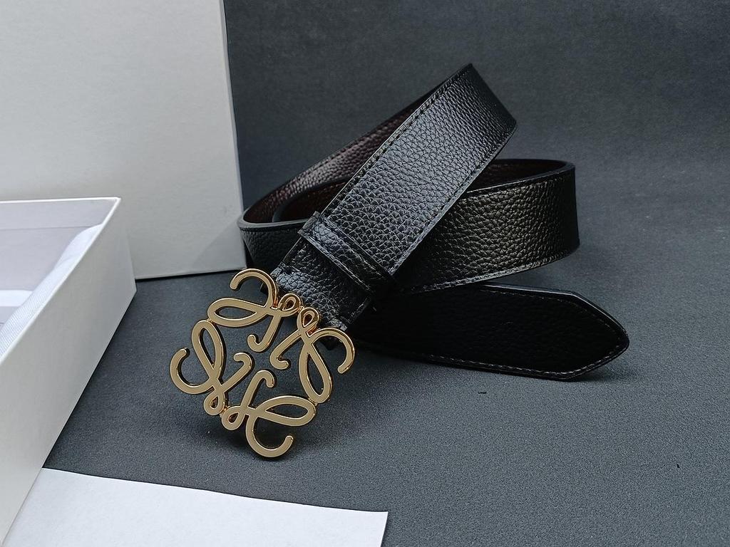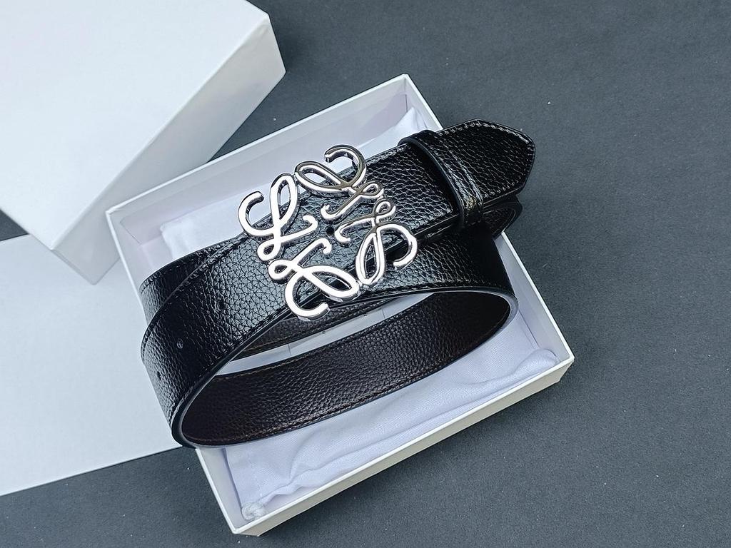 Loewe Smooth Buckle Lychee Grain Men's Leather Belt - Versatile, Fashionable Influencer Style in Stock