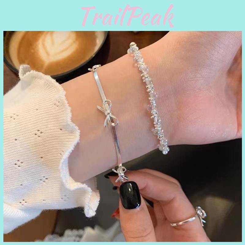 Современный и шикарный серебряный браслет с бантом для женщин Минималистичные украшения высокого класса Геометрический