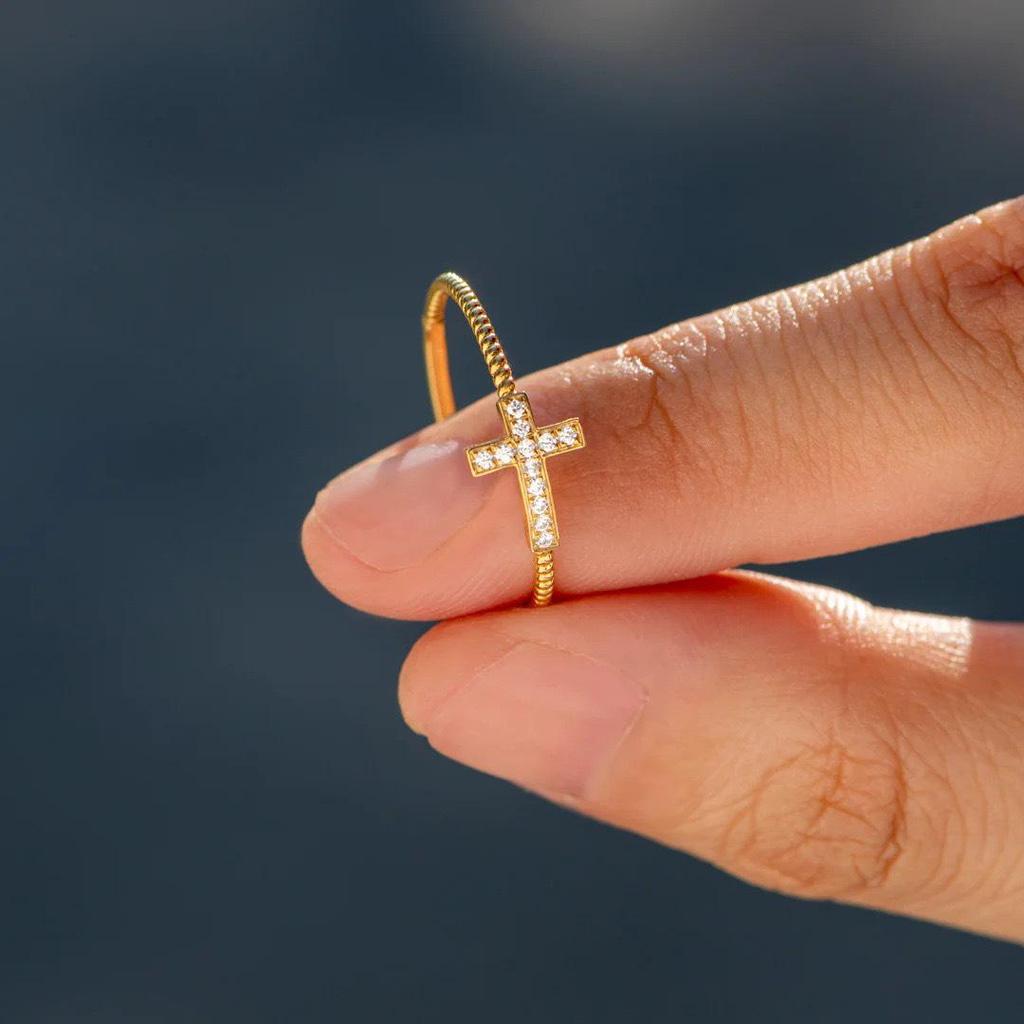 Женское кольцо-крест из стерлингового серебра 925 пробы с микропаве из цирконов - Высокая мода, европейский и американский стиль, идеально подходит для указательного пальца