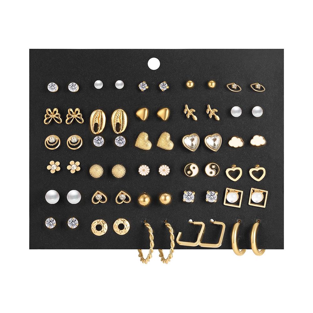 МодельСерьги-пусеты с бабочками, ромашками и жемчугом в стиле Тайцзи, набор из 30 шт. 5608201