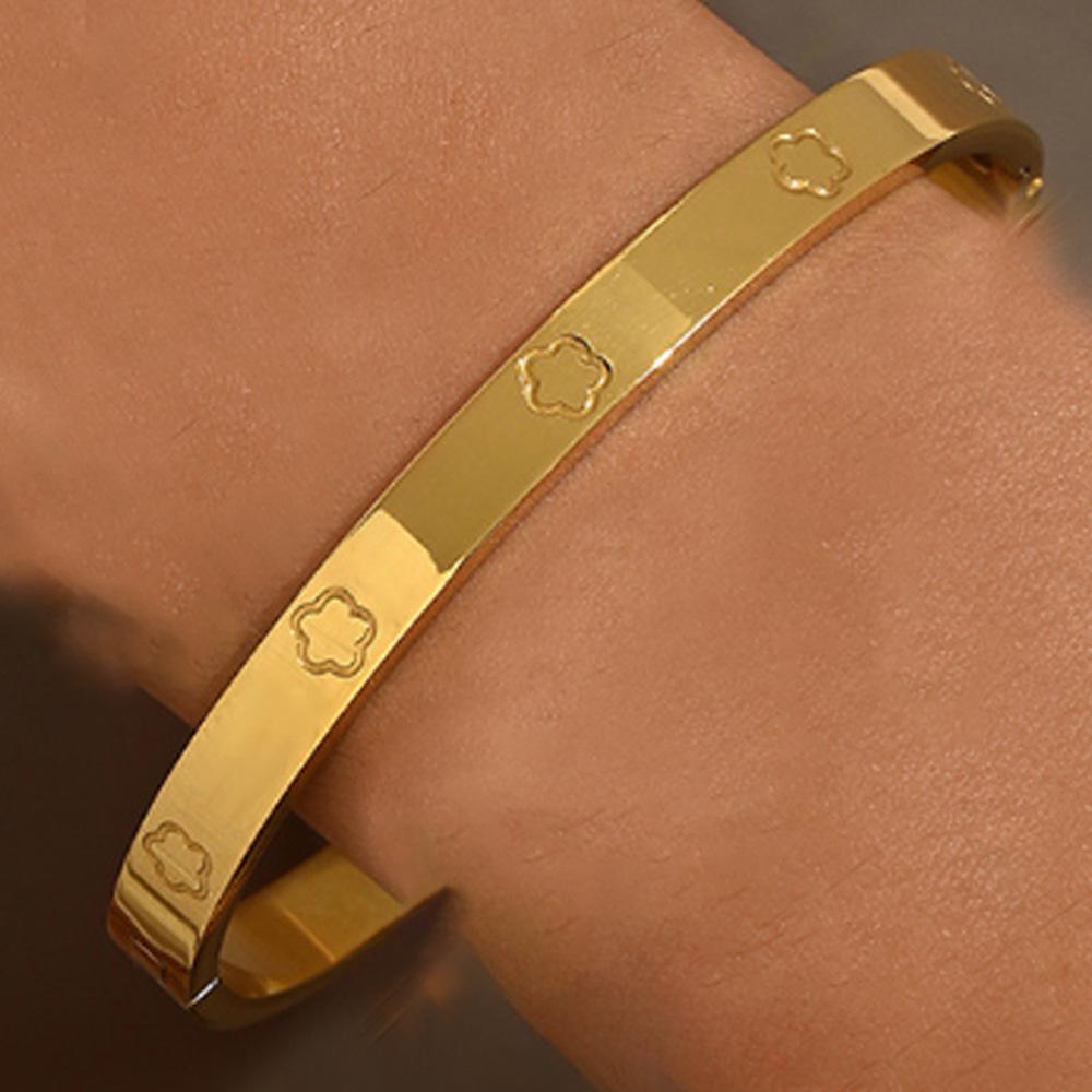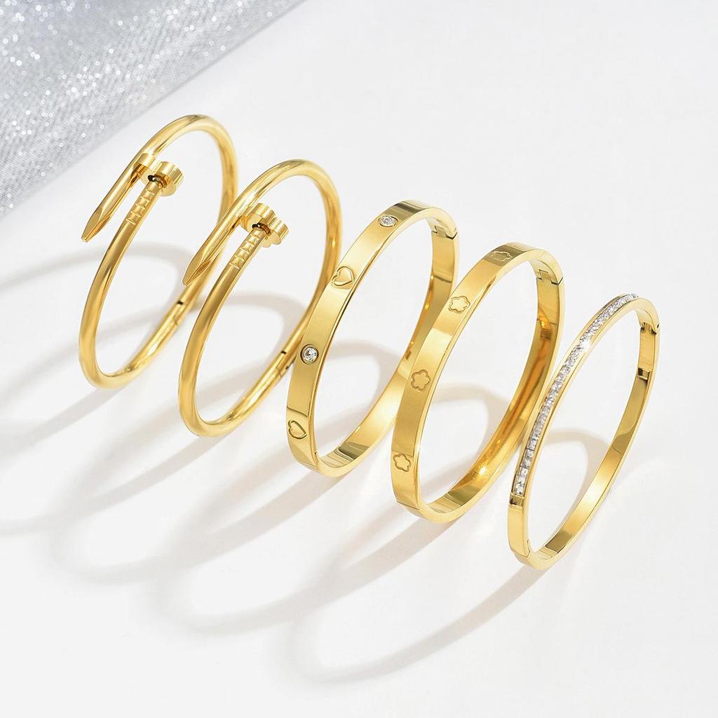 Набор браслетов из золота и нержавеющей стали с гвоздями, усыпанными бриллиантами, звездными акцентами и браслетами в виде четырехлистника.