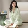 Женская пижама из 100% хлопка с длинным рукавом, 2025: Идеально для осени, зимы и весны, можно носить на улице, домашняя одежда из 100% хлопка в стиле кимоно