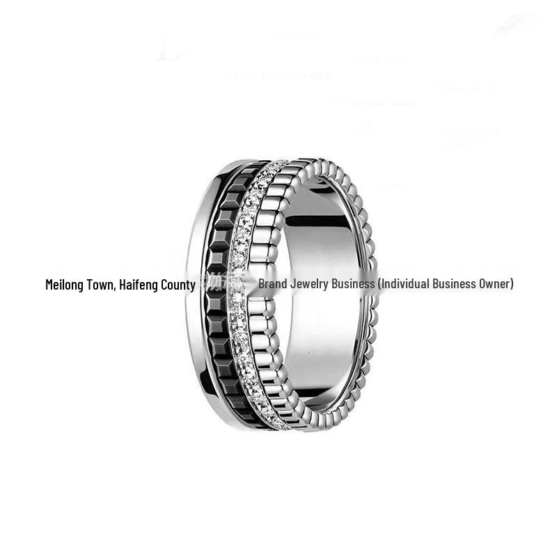 Baojia Высококлассное керамическое вращающееся кольцо для пары с черными бриллиантами - Роскошное и универсальное для мужчин и женщин
