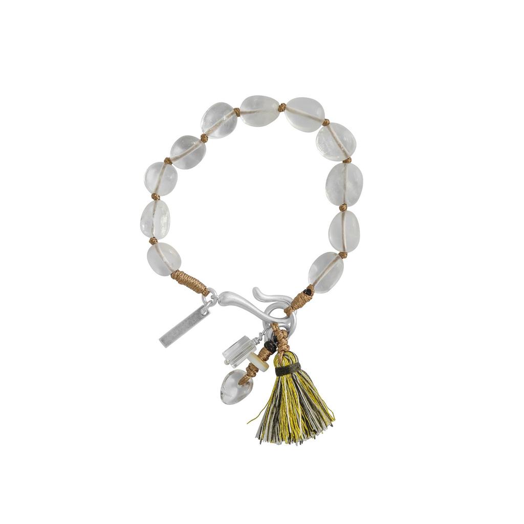 Nomadic Glacier Ethnic Style White Crystal Tassel Bracelet - Retro Design with Braided Rope