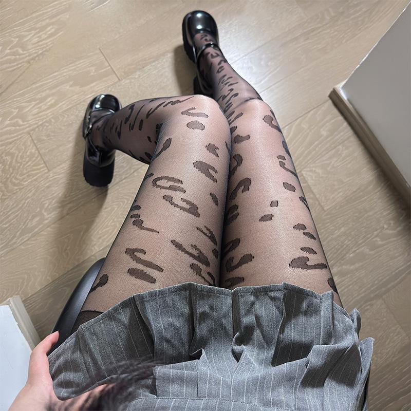 Ретро жаккардовые черные чулки с леопардовым принтом - Сексуальные, модные и элегантные женские чулки 3195