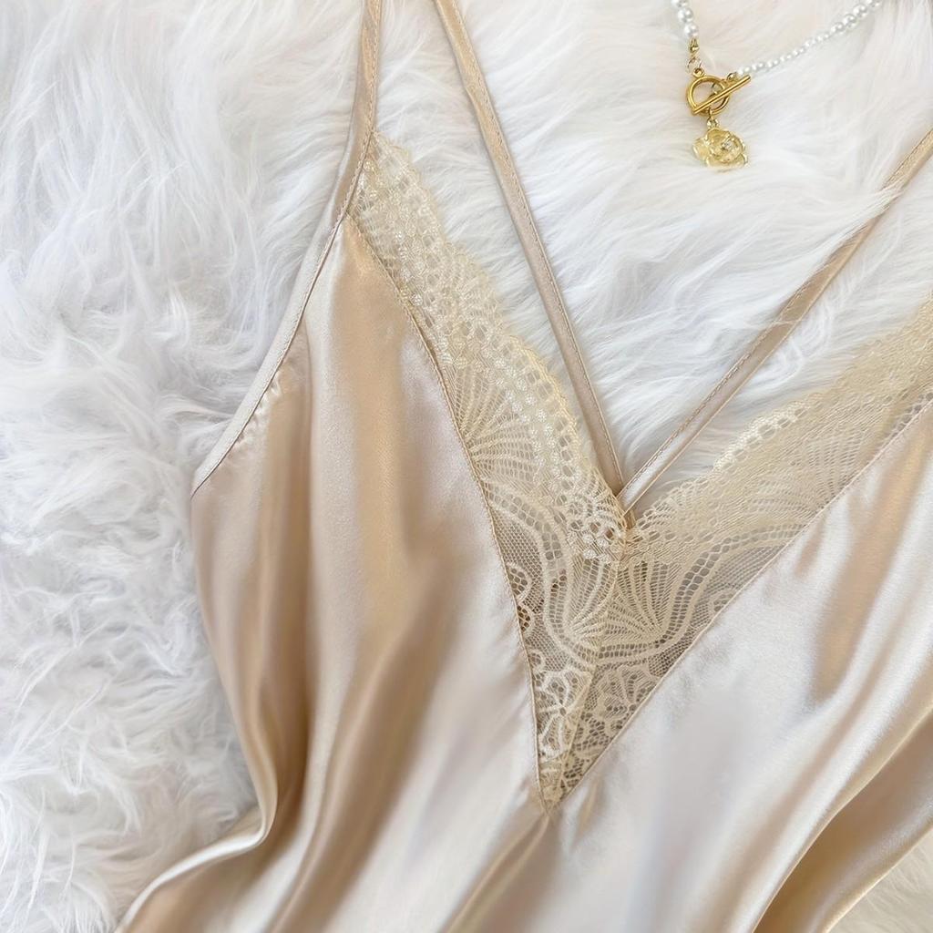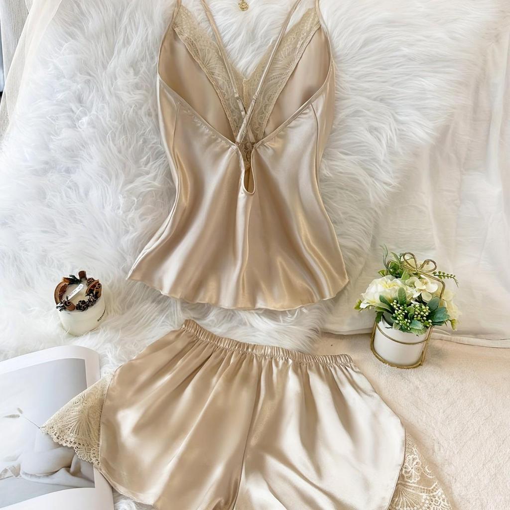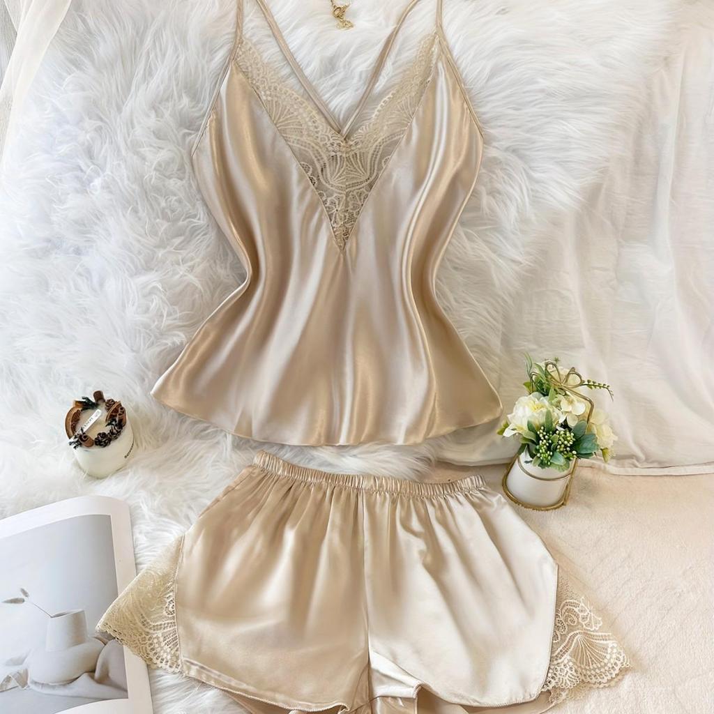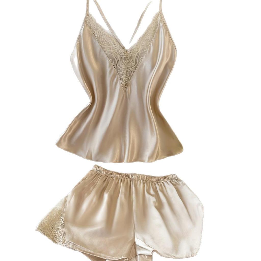Побалуйте себя роскошью и элегантностью с этим изысканным женским пижамным комплектом, изготовленным из премиального шелка.. Этот комплект, созданный для усиления вашей привлекательности, украшен сексуальным кружевом, которое добавляет нотку изысканности.. Дизайн без рукавов обеспечивает максимальный комфорт и свободу движений, что делает его идеальным для теплых ночей или стильного отдыха.. Оцените идеальное сочетание европейских и американских модных веяний в этом шикарном и чувственном пижамном комплекте.
