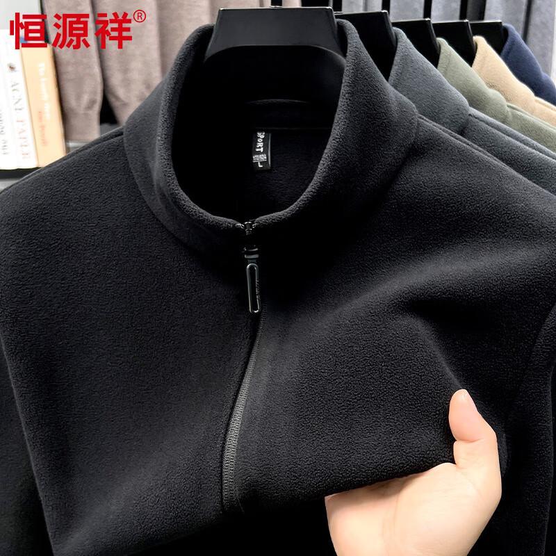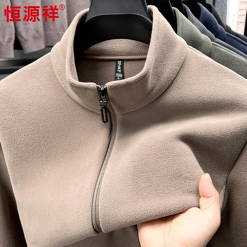 Hengyuanxiang Мужской повседневный однотонный флисовый кардиган со стойкой