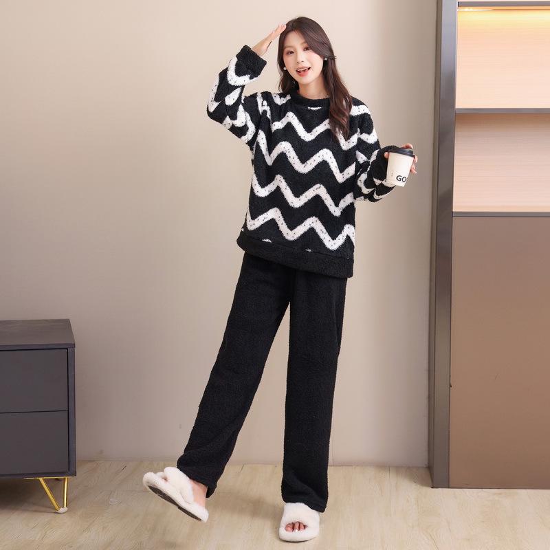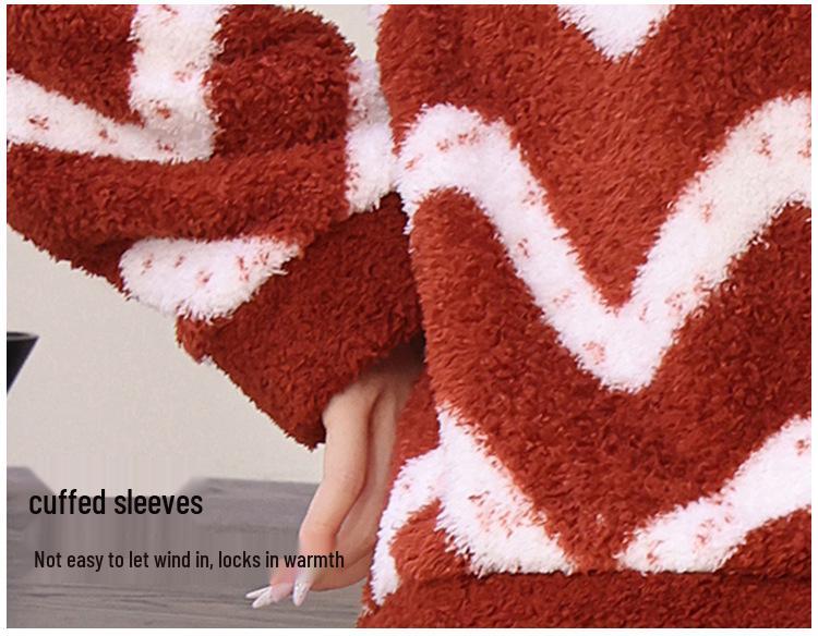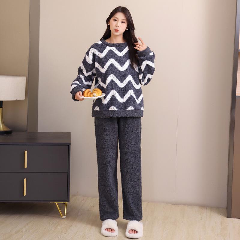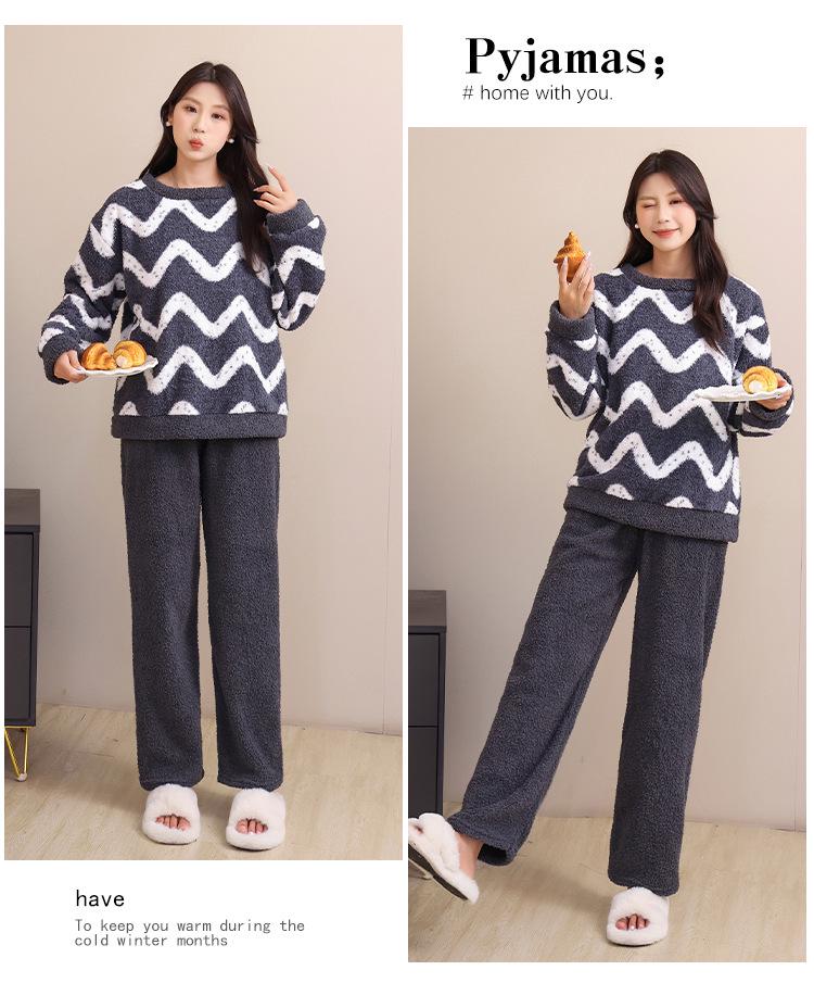 Унисекс Зимний Пижамный Комплект из Кораллового Флиса - Утепленный, Плюс Вельвет, Теплая Домашняя Одежда, Пуловер с Круглым Вырезом, Идеально подходит для Ношения в Помещении и на Улице