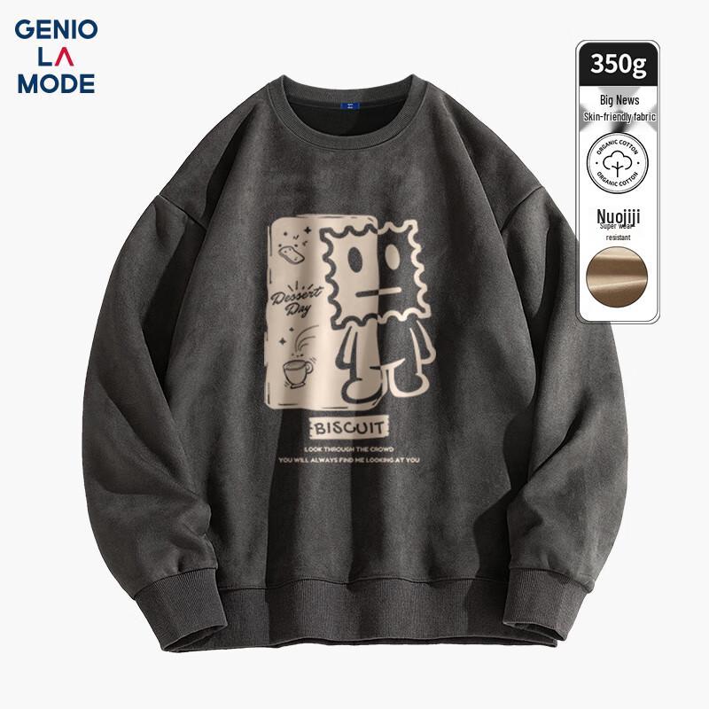 GENIOLAMODE Men's Suede Velvet Pullover Sweatshirt