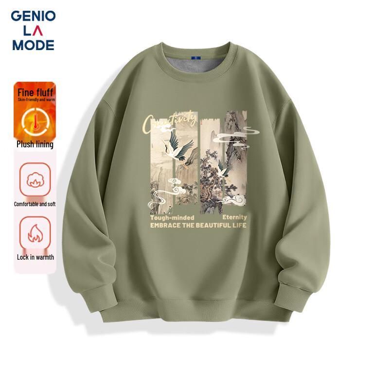 GENIOLAMODE Men's Fleece-Lined Chinese Style Print Sweatshirt