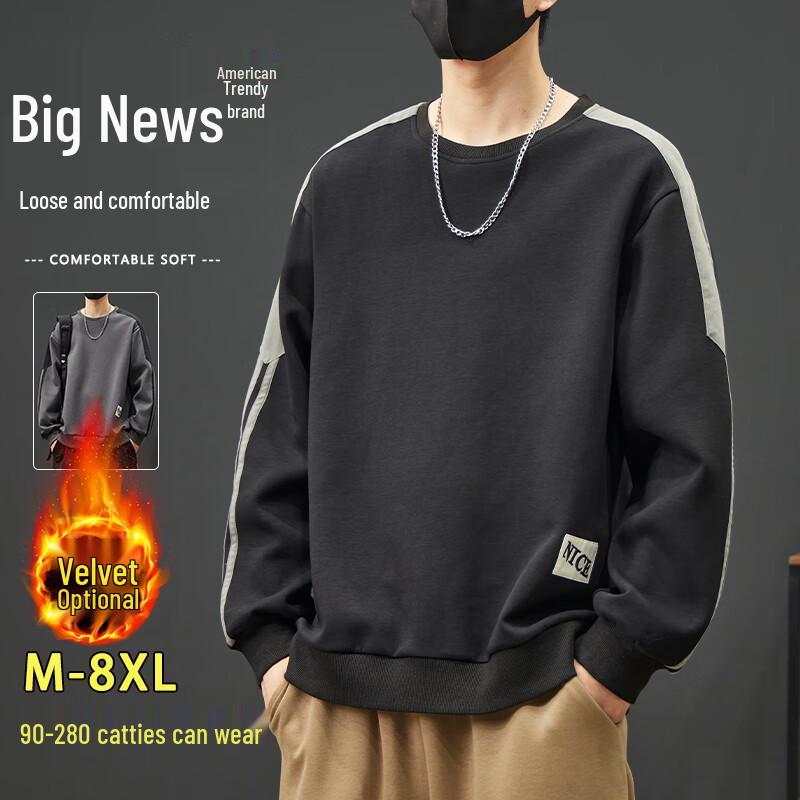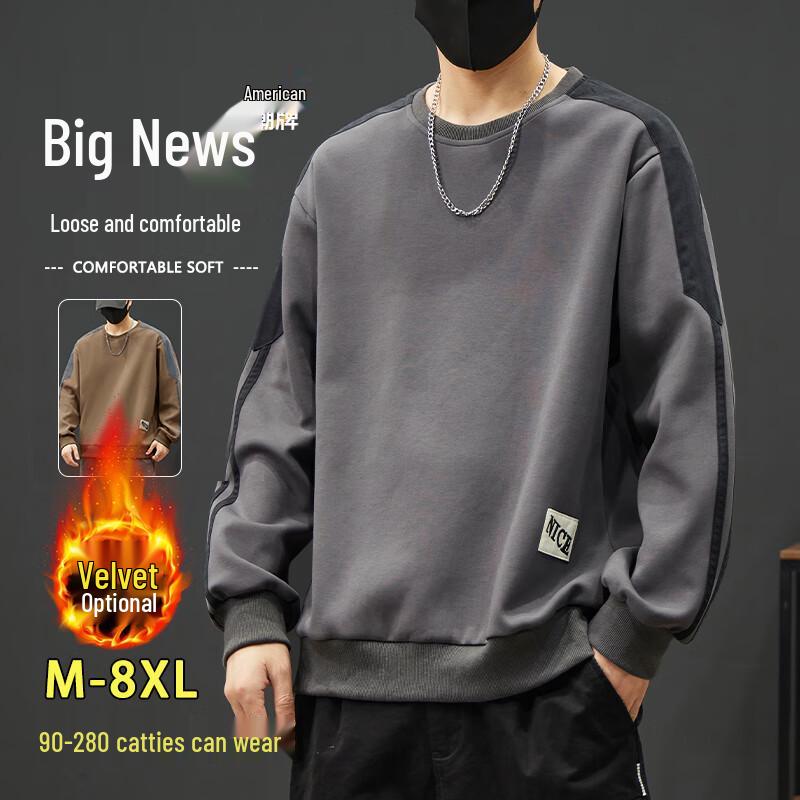 Мужской свитшот оверсайз в стиле хай-стрит с круглым вырезом, плотный, с длинным рукавом, для больших и высоких