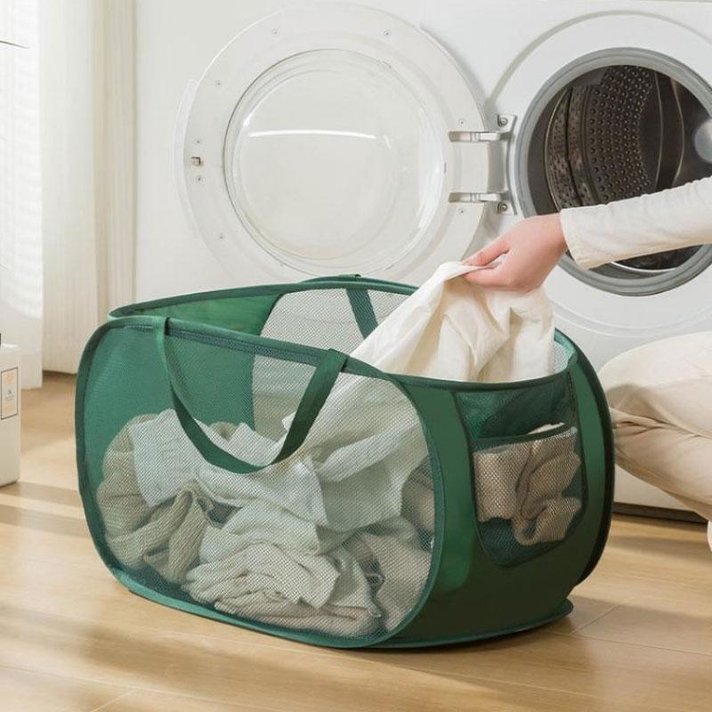 1PC Foldable Laundry Bag Extra Large Mesh Dirty Clothes Hamper with Handles for Bedroom Bathroom Storage Organizer Collapsible