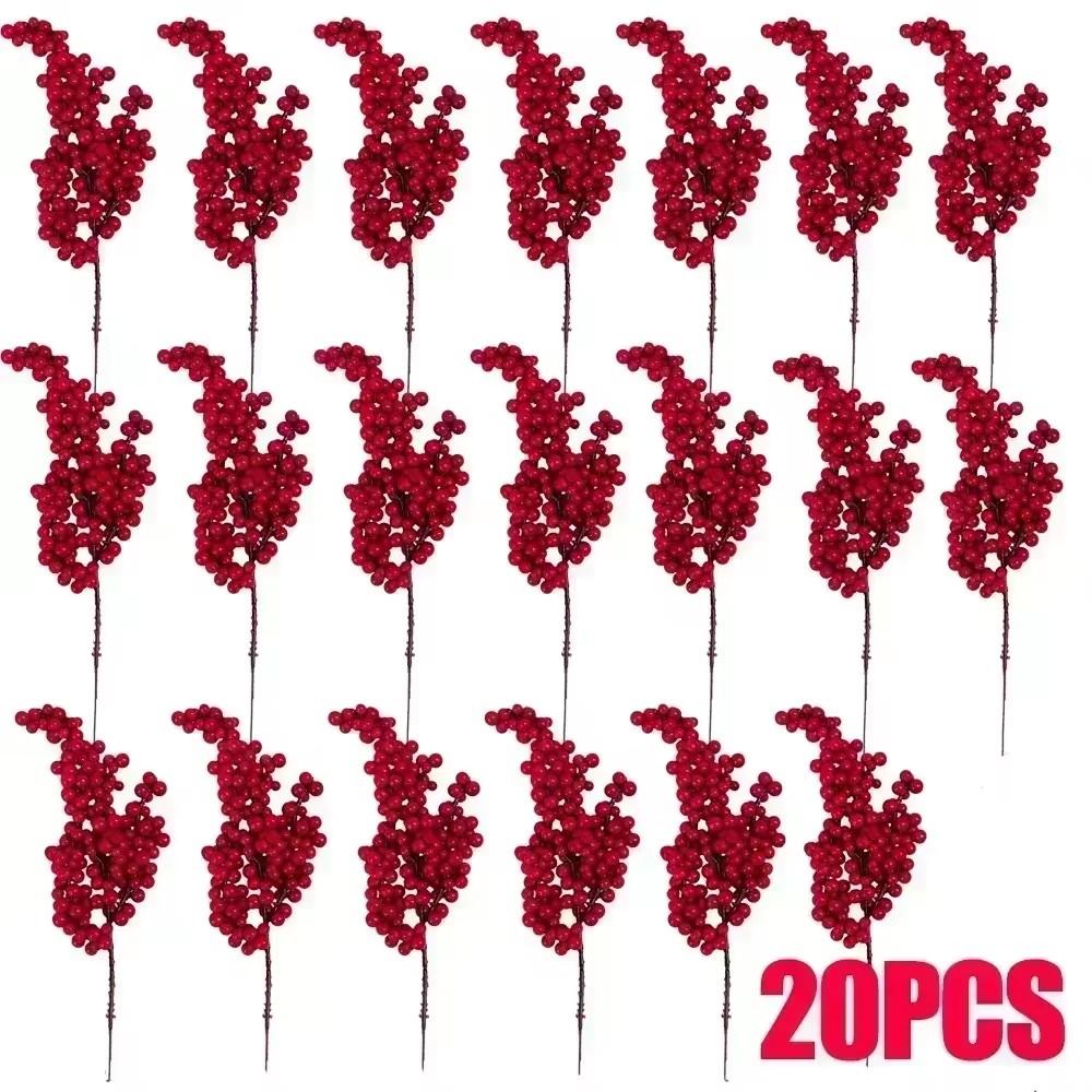 Искусственные ягоды Рождественские украшения Ветки красных ягод для рождественской елки Вечеринка Украшения для дома Настольный венок из красных фруктов DIY Подарок