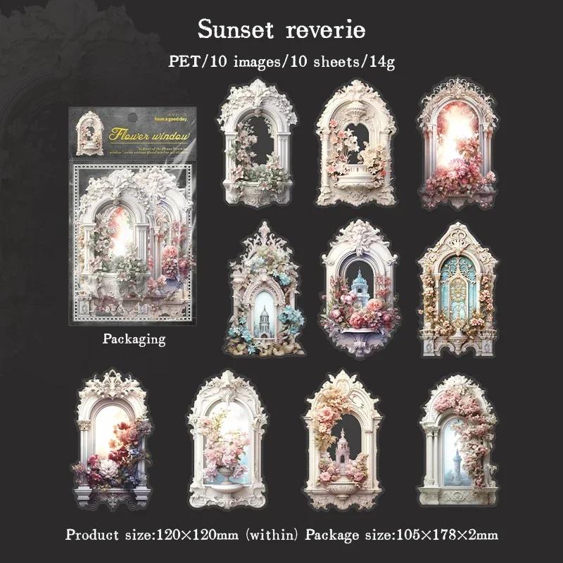 10 шт. Прозрачные ПЭТ наклейки с цветами для коллажа на окне, джанк-журнала, скрапбукинга, эстетичный декор, набор для рукоделия, художественные принадлежности