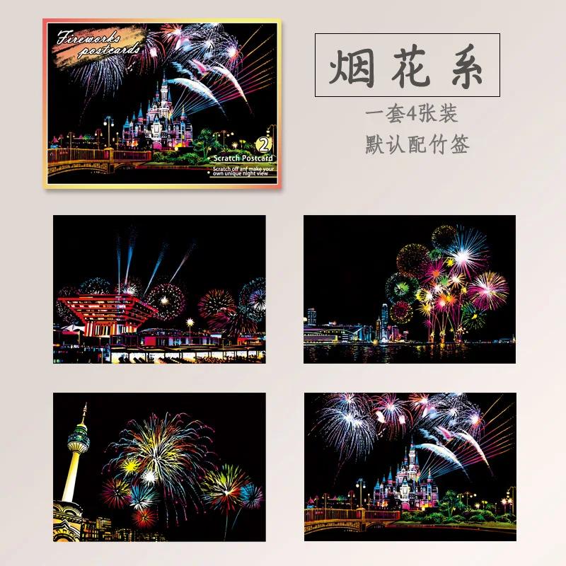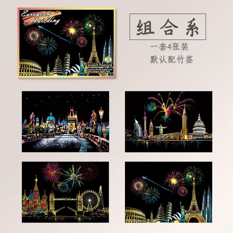 Сделай сам 4 шт. Детская ночная сцена Искусство Царапины Живопись Игрушки Городская застройка Пейзаж Детские развивающие игрушки Подарок на день рождения Декор комнаты