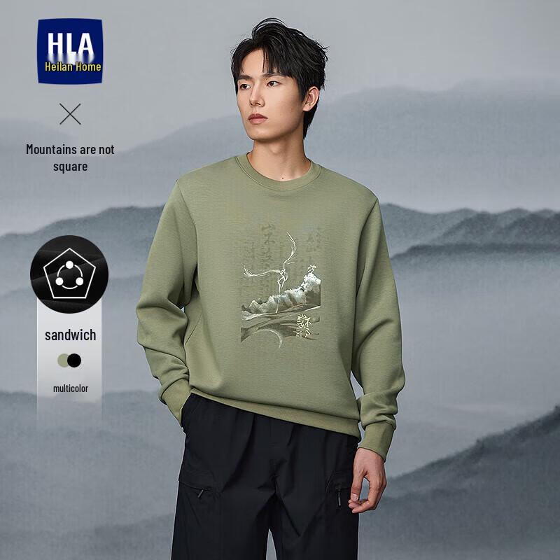 HLA Men's Embroidered Mountain Graphic Crewneck Sweatshirt — купить товар онлайн с бесплатной доставкой по всему миру!