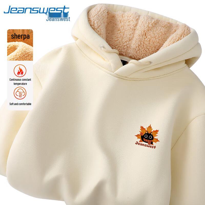 Jeanswest Unisex Cartoon Black Cat Maple Leaf Fleece Lined Hoodie