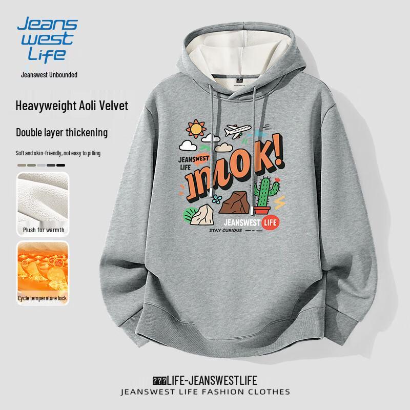 JEANSWEST LIFE Men's Heavyweight Fleece Hooded Sweatshirt