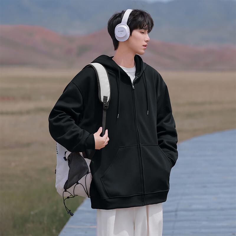 Мужское худи оверсайз на молнии с капюшоном в американском ретро-стиле VUUG