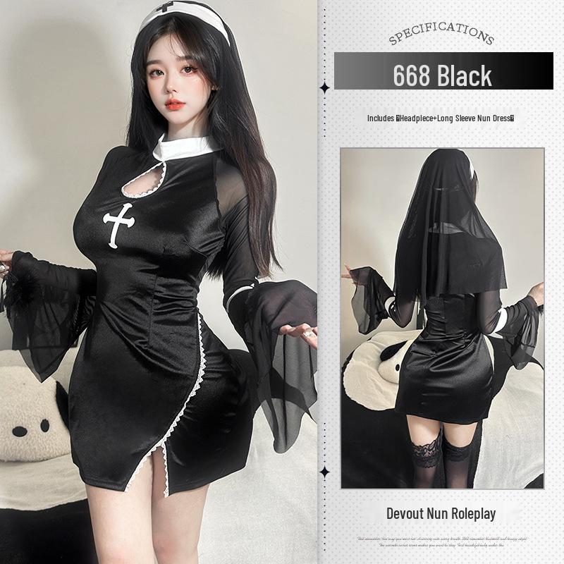 Xianyi Темный Сексуальный Косплей Монахини на Хэллоуин Облегающее Белье с Разрезом для Женщин 668