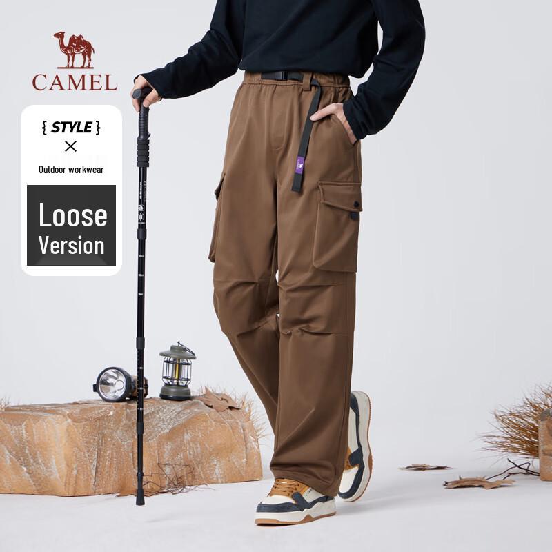 Camel Unisex Fleece-Lined Straight-Leg Cargo Pants
