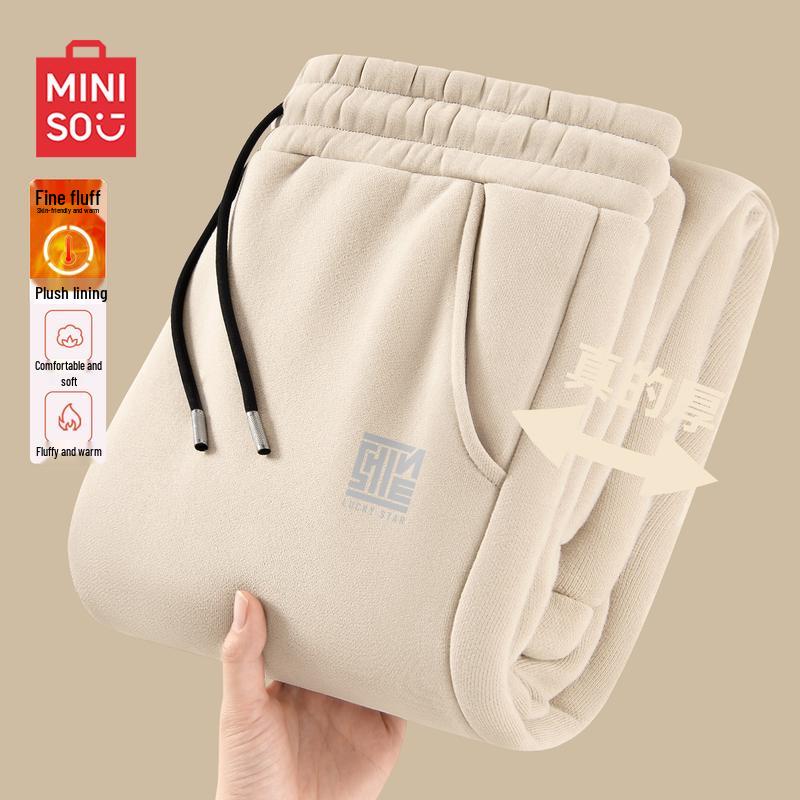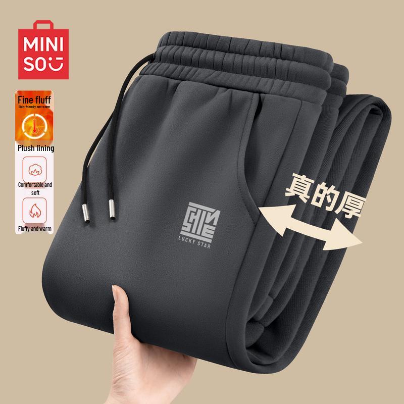 MINISO Men's American Retro Fleece-lined Jogger Sweatpants