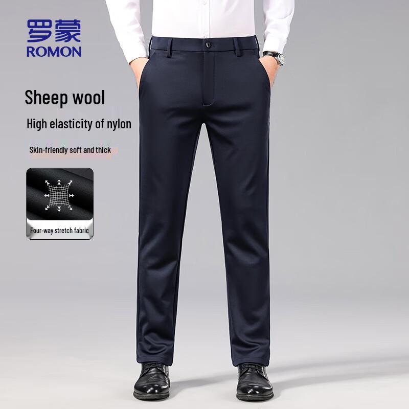 ROMON Men's Wool-Blend Straight-Leg Casual Pants