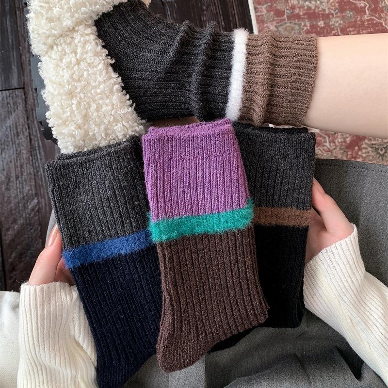 Женские осенне-зимние утолщенные теплые цветные полосатые гольфы