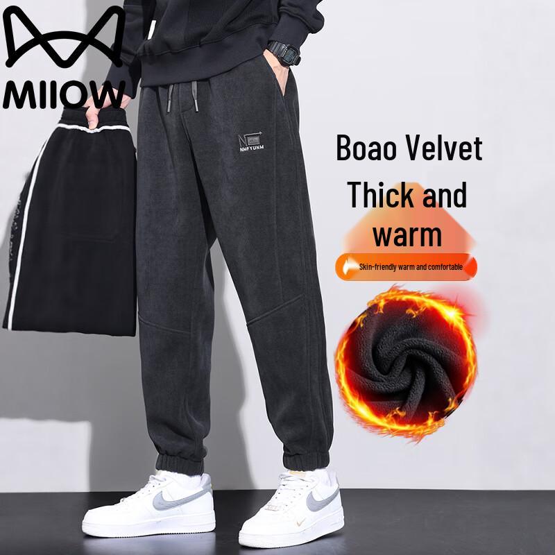 Maoren Men's Fleece-Lined Straight-Leg Casual Pants