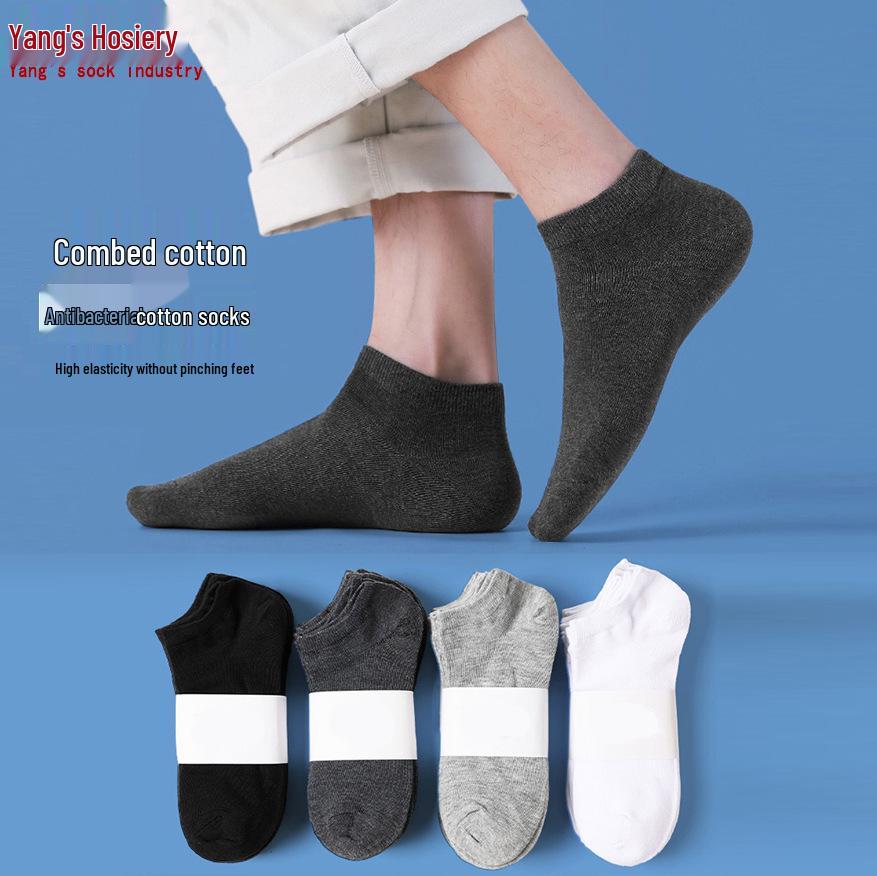 Мужские короткие носки из чистого хлопка - Всесезонные, Дышащие, Влагоотводящие, Устойчивые к запаху, Однотонные черные носки-лодочки, Весенне-осенний стиль