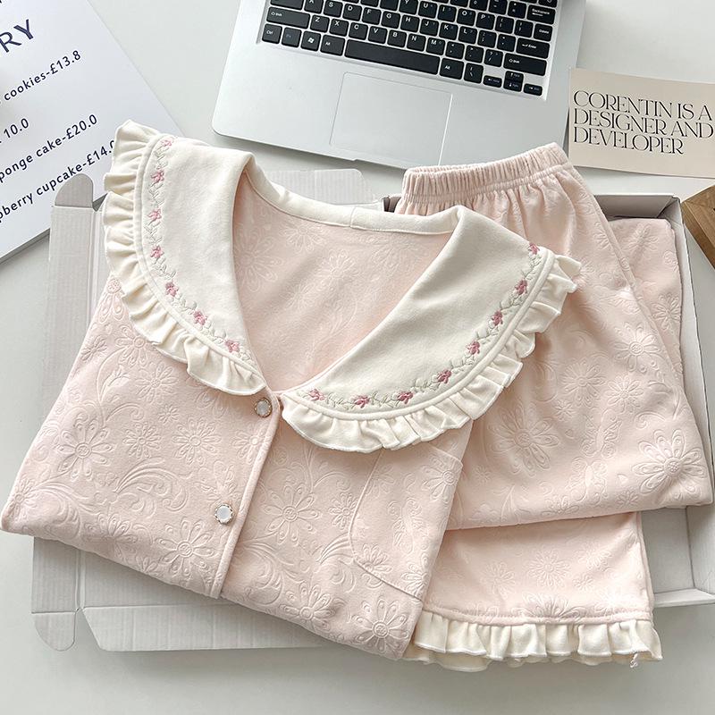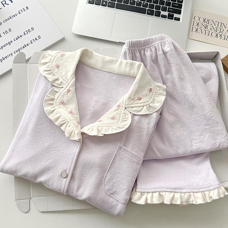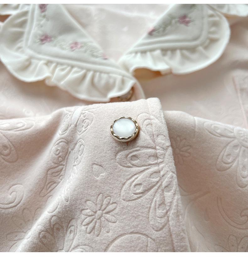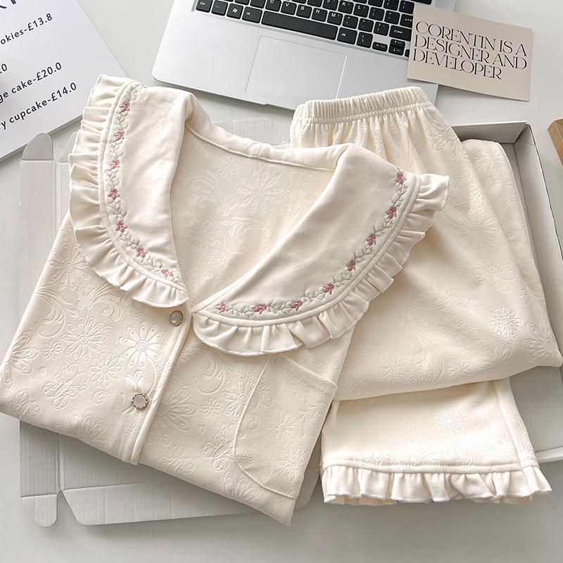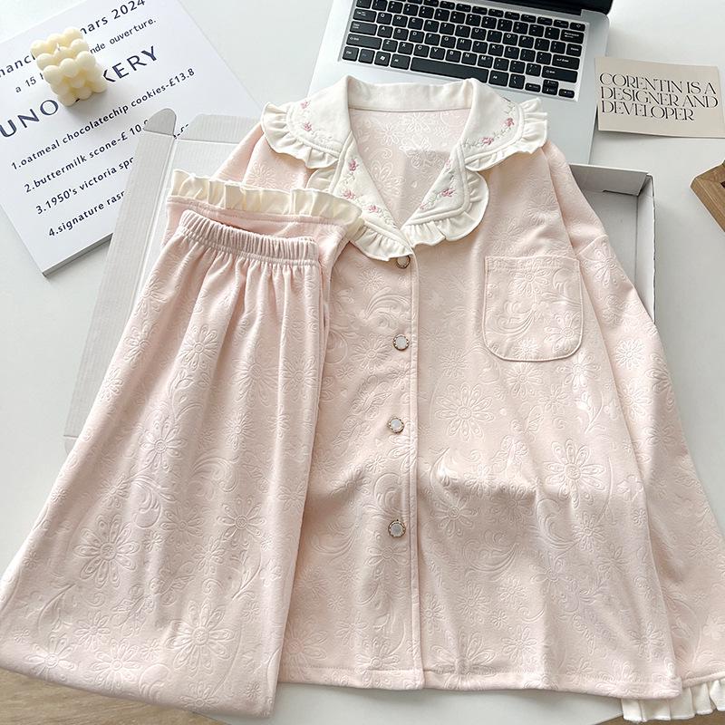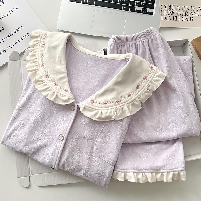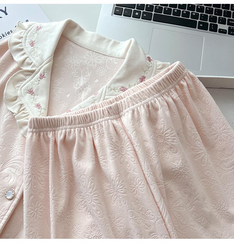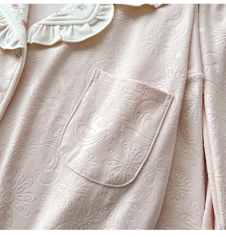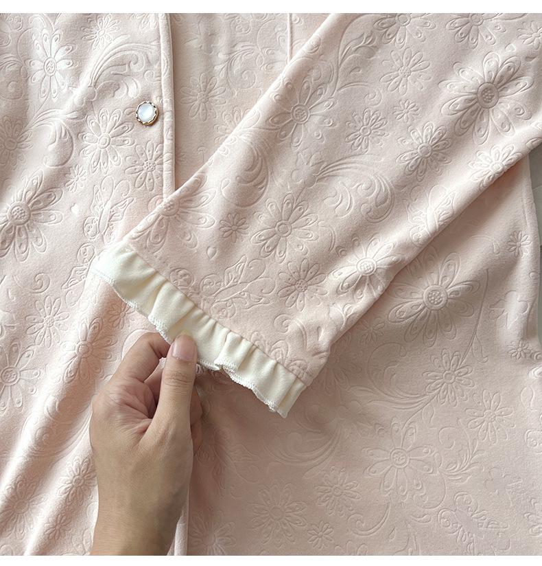 Женский велюровый жаккардовый пижамный комплект - Осенне-зимний дизайн с лацканами