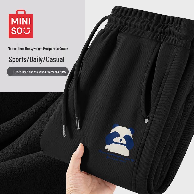 MINISO Men's Winter Warm Wide-Leg Curved Fleece-Lined Casual Pants
