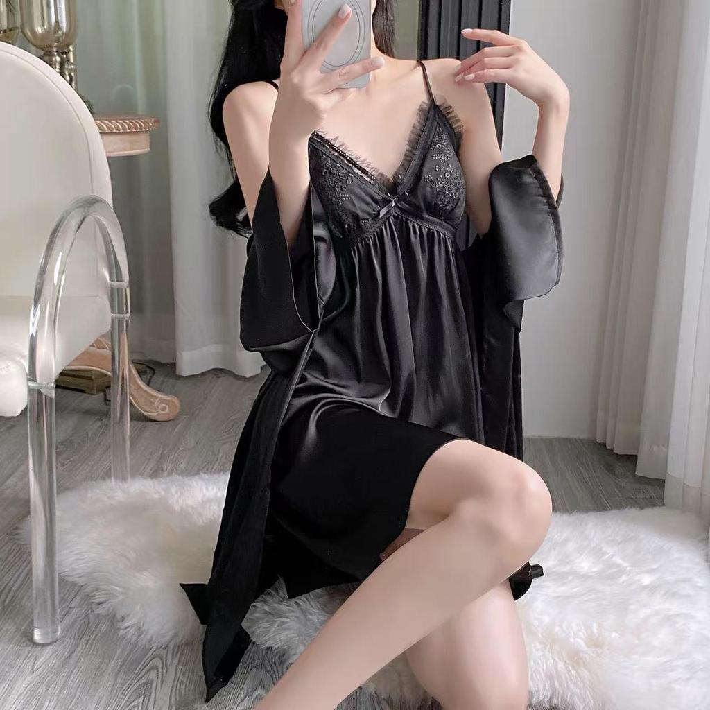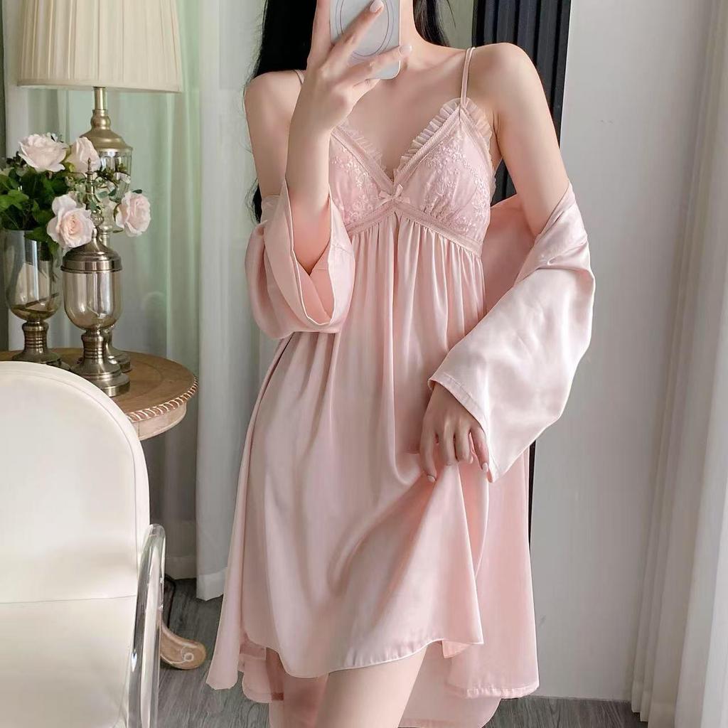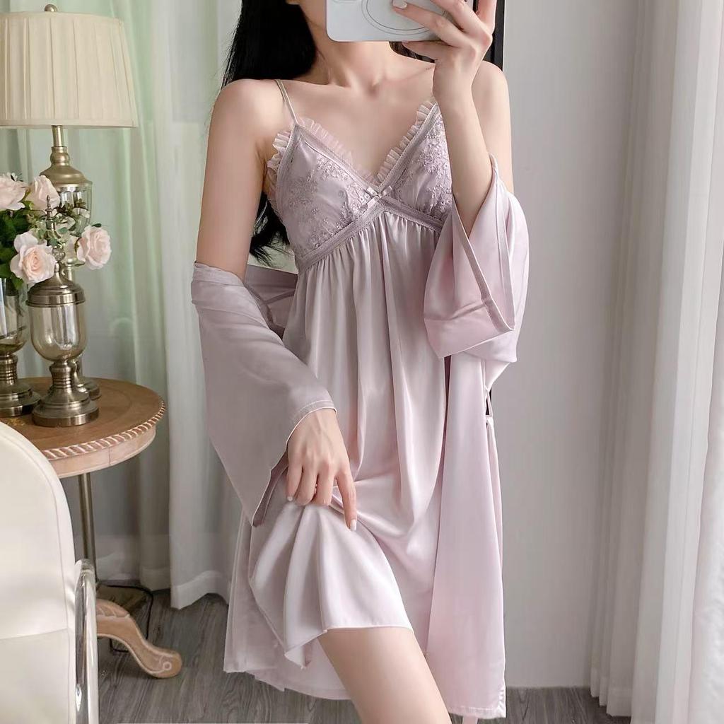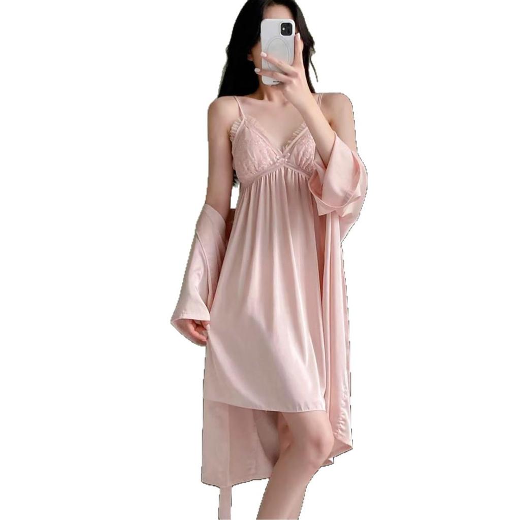 Насладитесь роскошным комфортом с этим высококлассным повседневным комплектом для сна, включающим женскую ночную сорочку с длинным рукавом и элегантный кружевной халат.. Изготовленный из премиального ледяного шелка и искусственного шелка, этот комплект дарит гладкое и шелковистое ощущение на коже.. Длинные рукава обеспечивают дополнительное тепло, а нагрудная подкладка гарантирует тонкую, подчеркивающую фигуру посадку.. Идеальный для неспешных вечеров и спокойных ночей, этот изысканный дуэт для сна сочетает в себе стиль и уют, и он идеально подходит для современных женщин, стремящихся к элегантности в своем ночном ритуале.