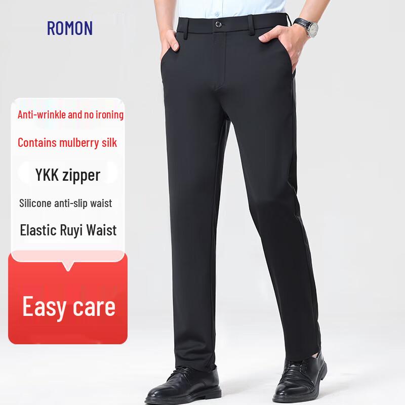 Luomeng Men's Silk Blend Stretch Straight-Leg Casual Business Pants