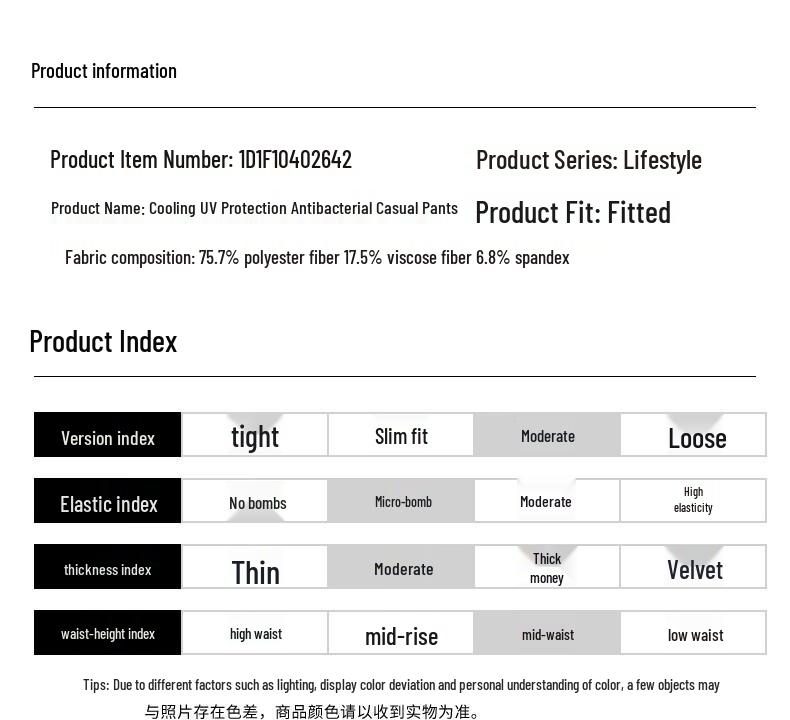 SEPTWOLVES Cooling Anti-UV Antibacterial Casual Pants