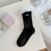 Мэри Джейн Носки женские с двойной иглой в корейском стиле, с белым кружевом и оборками, с тканевой этикеткой с надписью в стиле Miu
