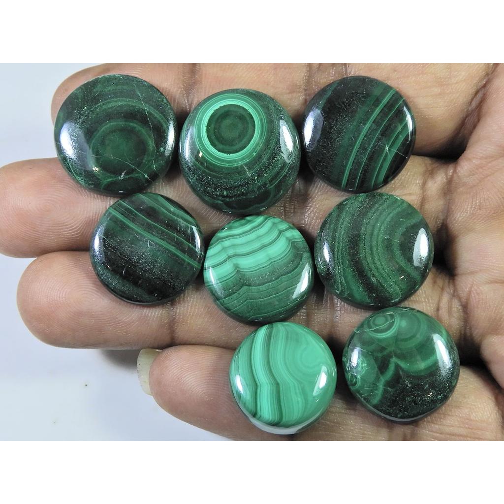 08 шт. Натуральный зеленый малахит круглый кабошон свободный драгоценный камень 180 карат. Лот C-473