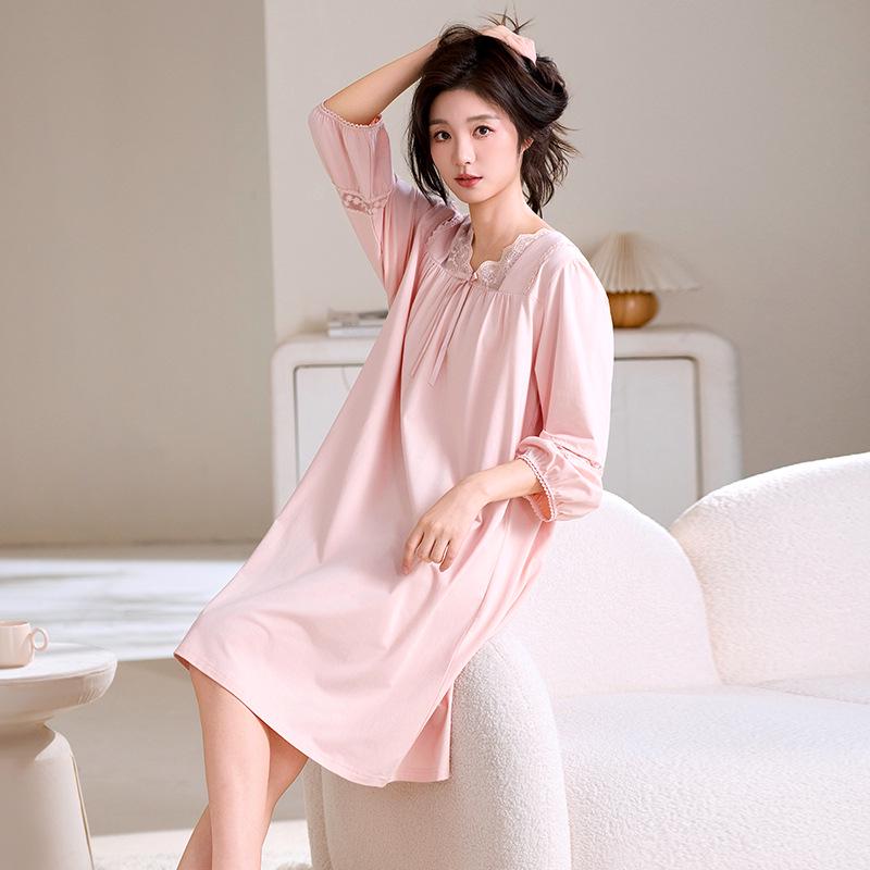 Женская легкая модальная хлопковая ночная сорочка средней длины, больших размеров, для весны и осени. — купить товар онлайн с бесплатной доставкой по всему миру!