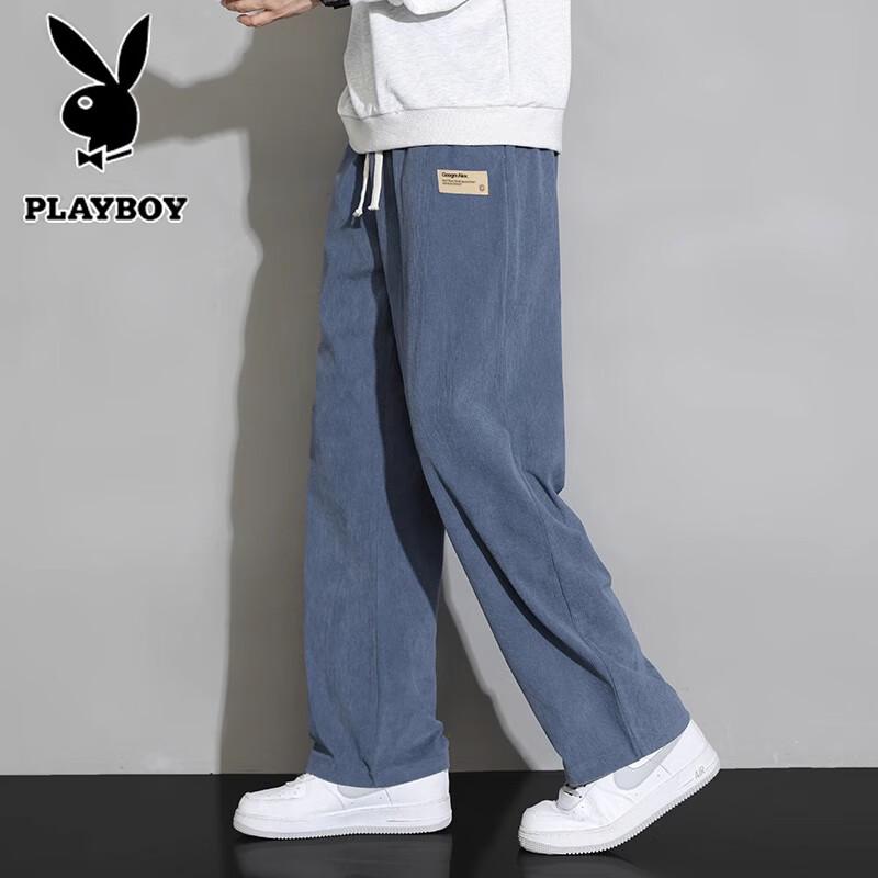 Playboy Men's Breathable Drawstring Loose Straight-Leg Casual Pants