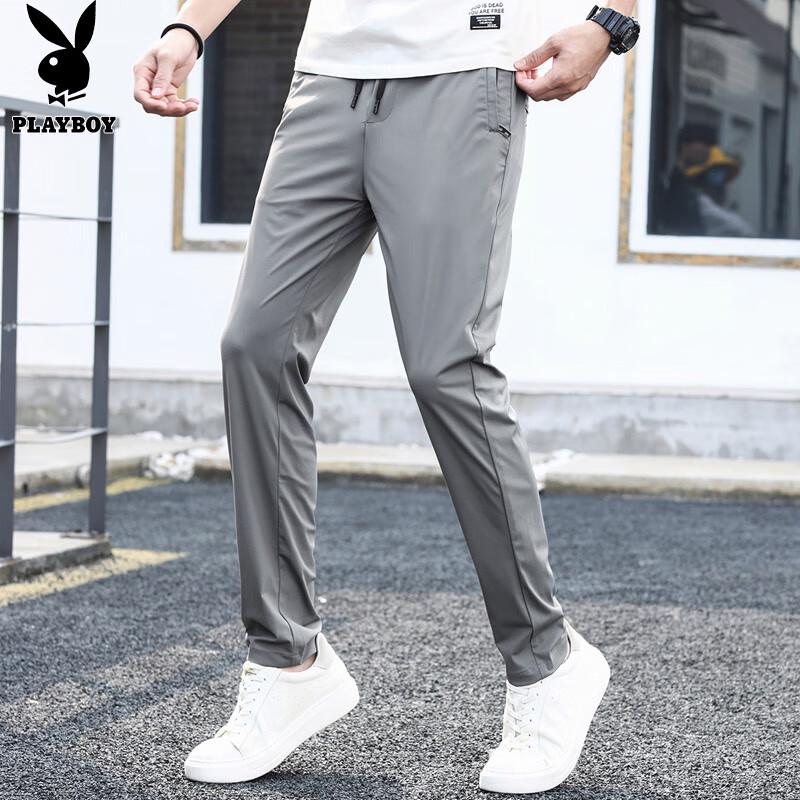PLAYBOY Мужские свободные прямые повседневные брюки из ледяного шелка